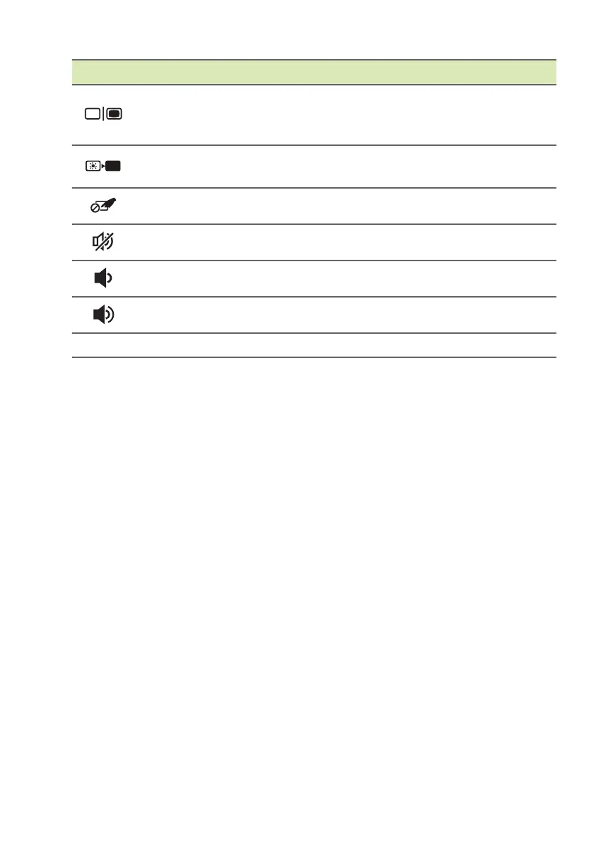 Touchpad toggle Turns the built-in touchpad on and off.