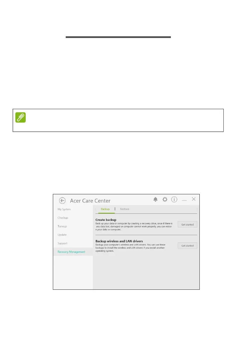 Recovery Management allows you to quickly and easily back up your