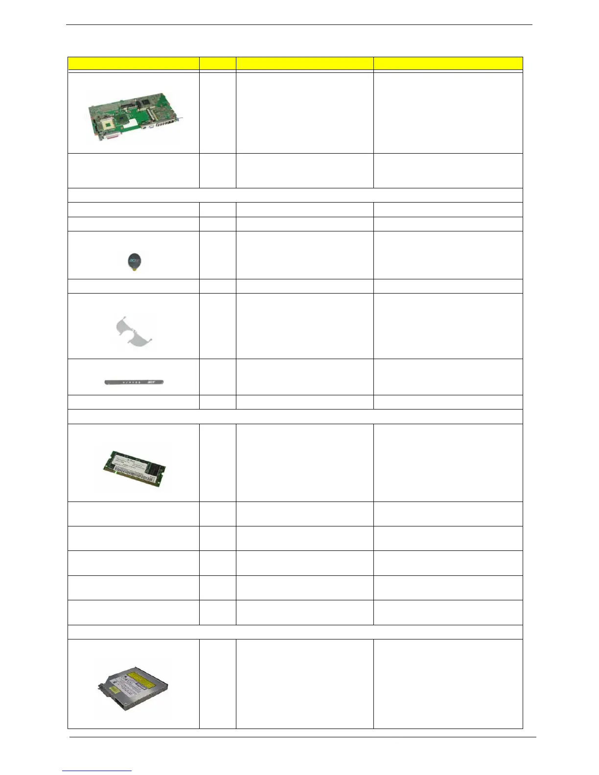 Extensa 2500 FRU List