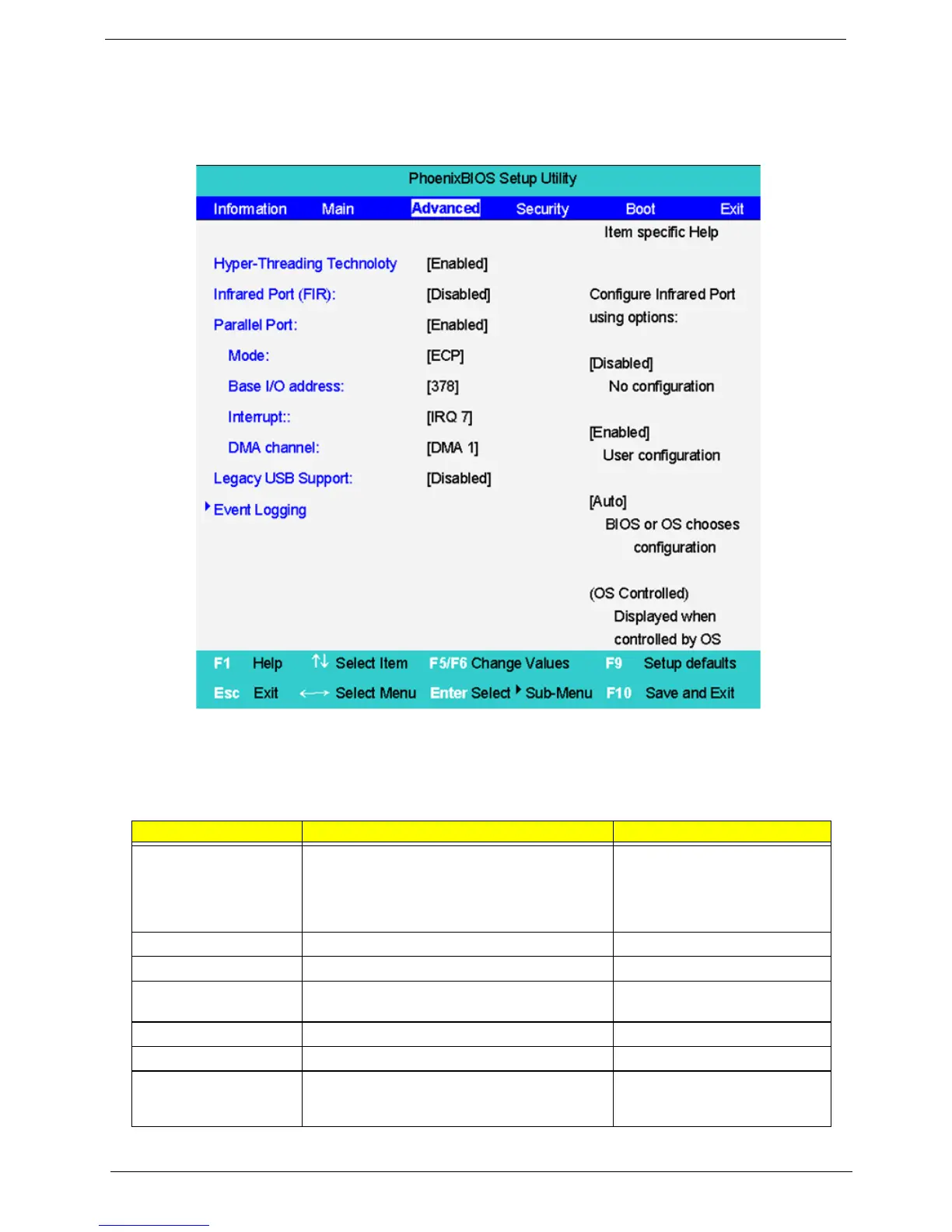 The Advanced menu screen contains parameters involving your hardware devices. It also provides advanced
