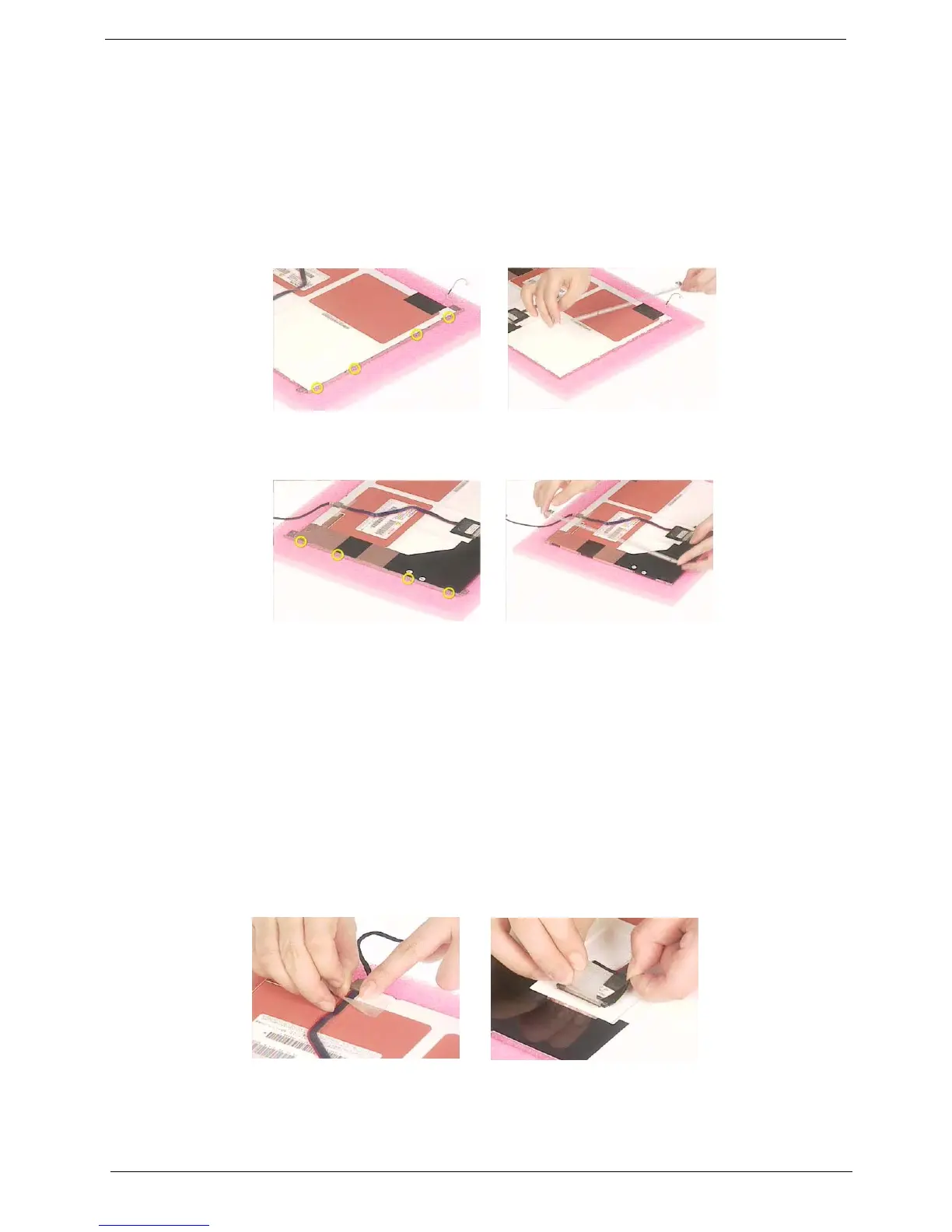 8. Remove the four screws holding the right LCD bracket.Then remove the right bracket.