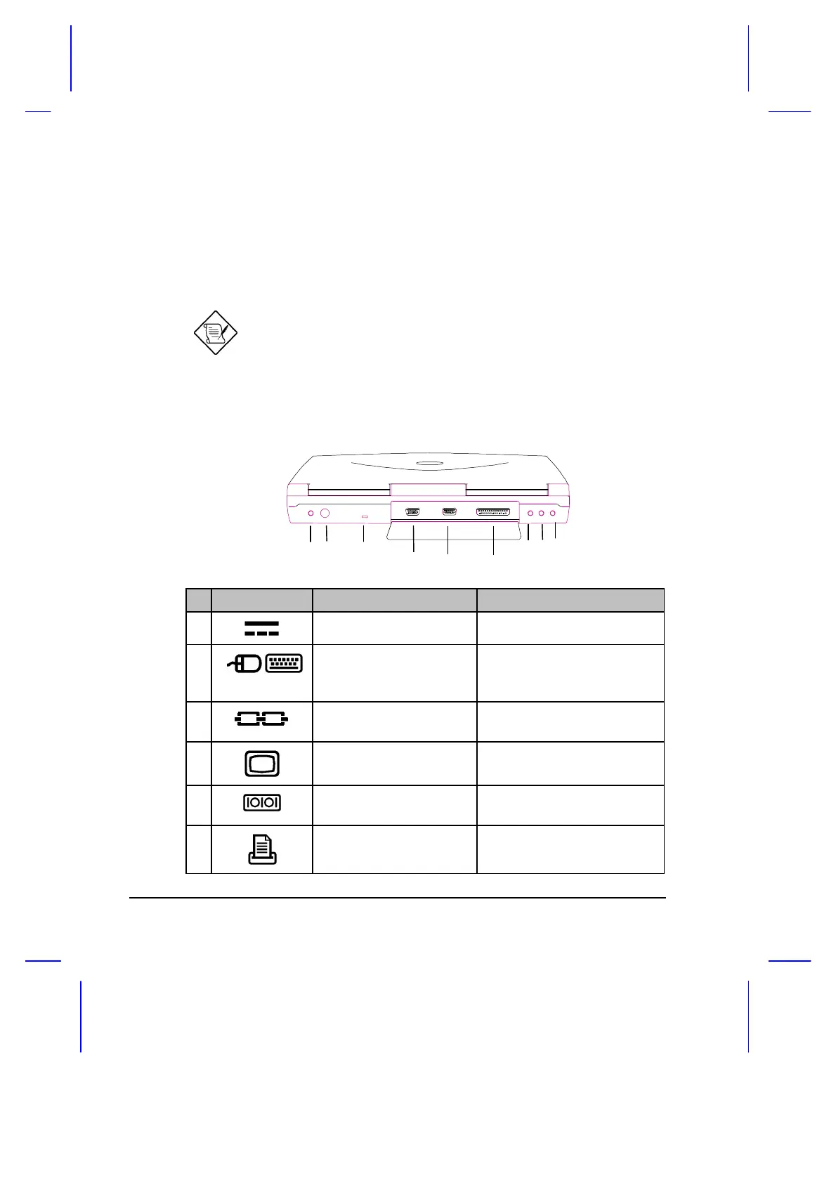 Ports allow you to connect peripheral devices to your notebook computer as