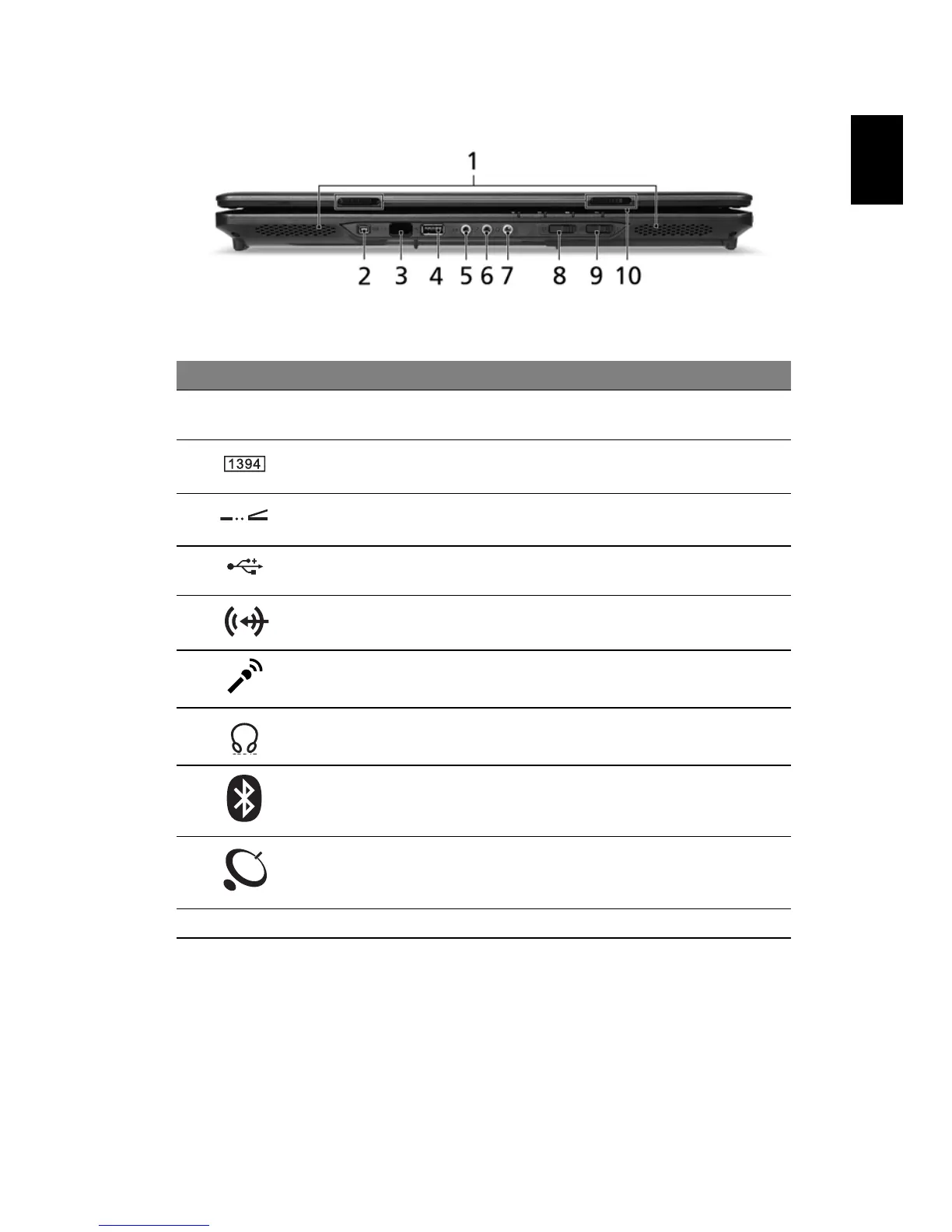 2 IEEE 1394 port Connects to IEEE 1394 devices.