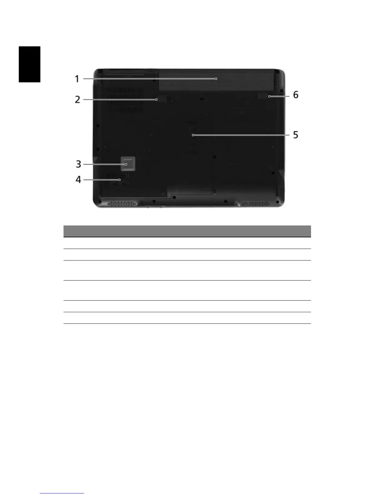 1 Battery bay Houses the computer's battery pack.