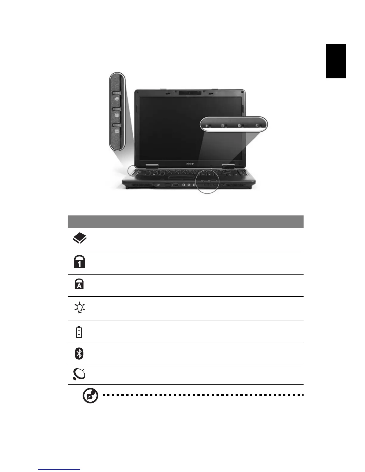 Battery Indicates the computer's battery status.