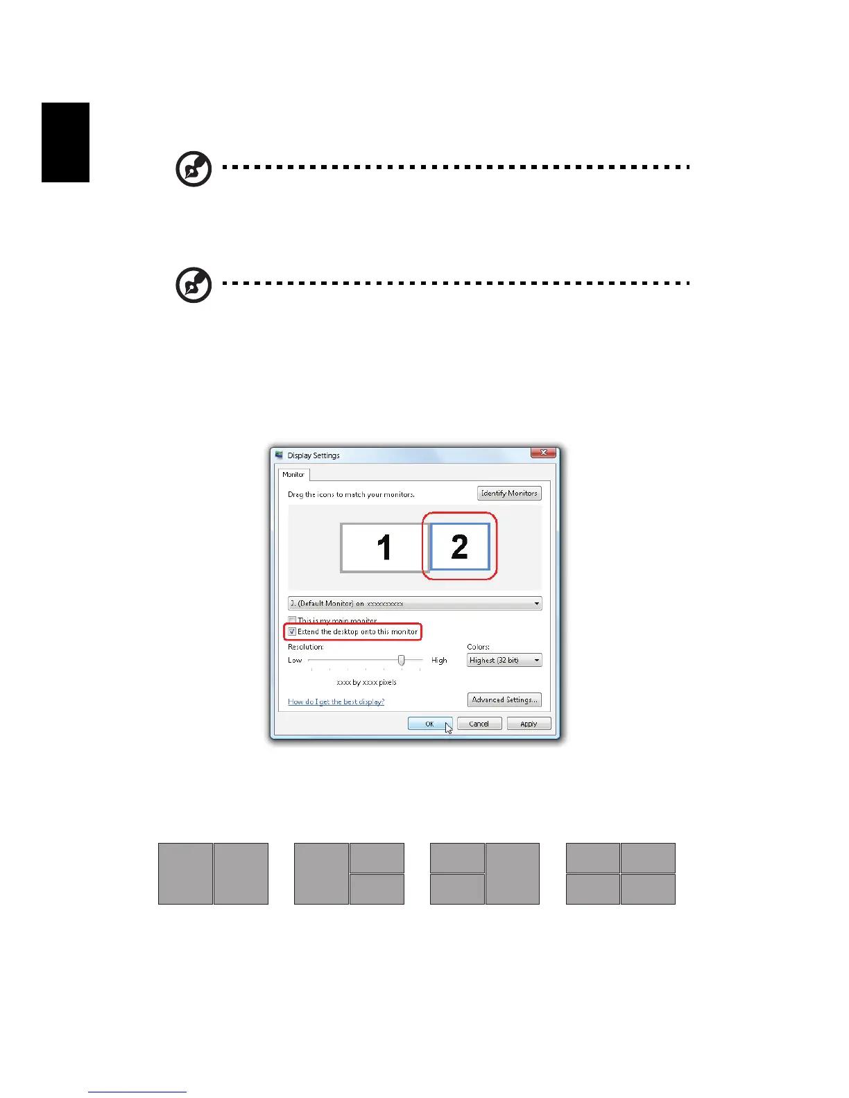 click the check box Extend the desktop onto this monitor. Finally, click Apply to