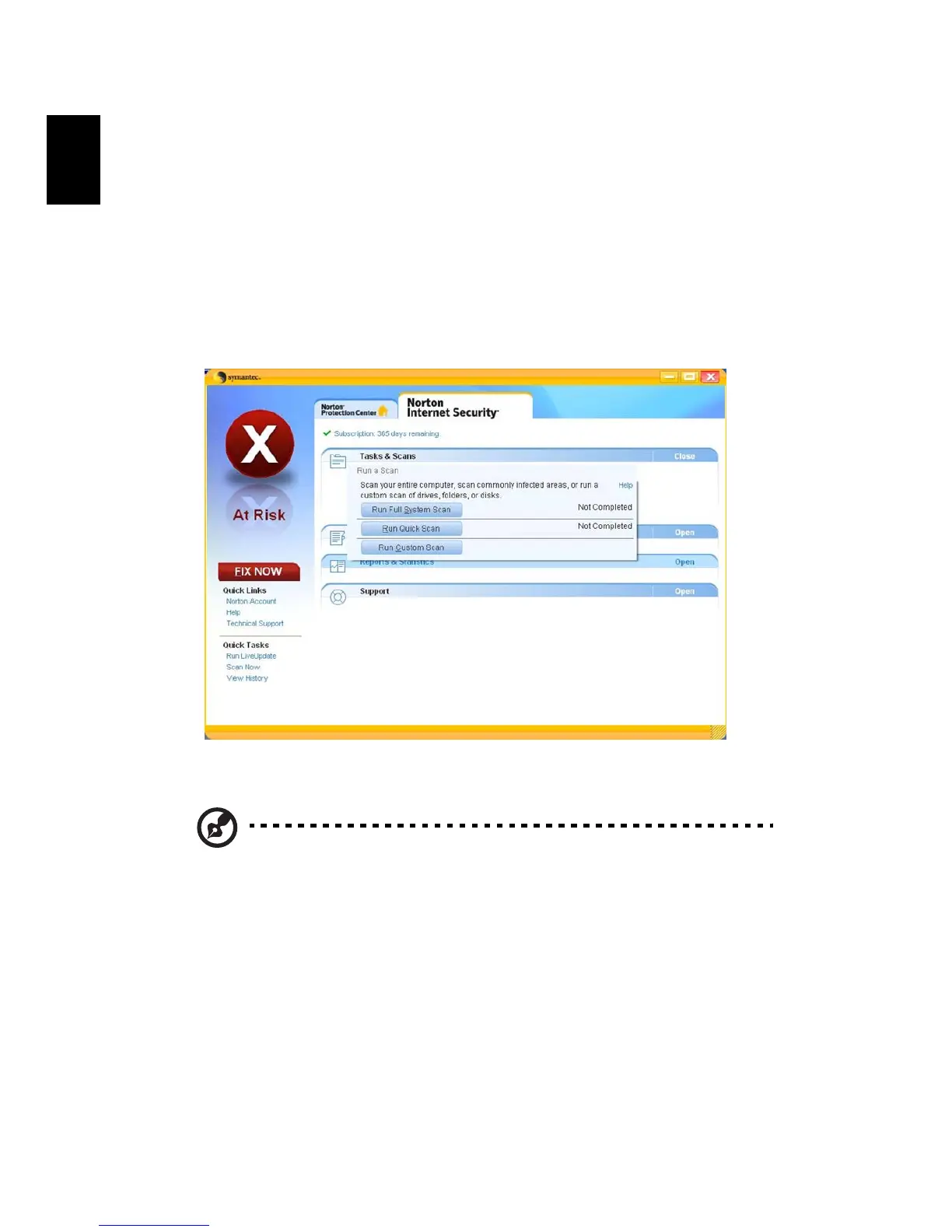 Note: For optimal security, run a Full System Scan when scanning