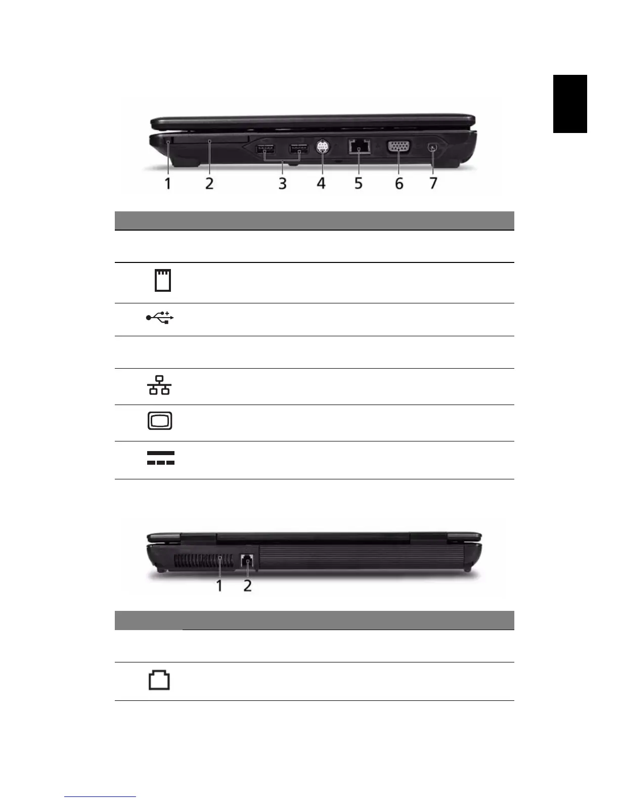 1 Ventilation slots Enable the computer to stay cool, even after