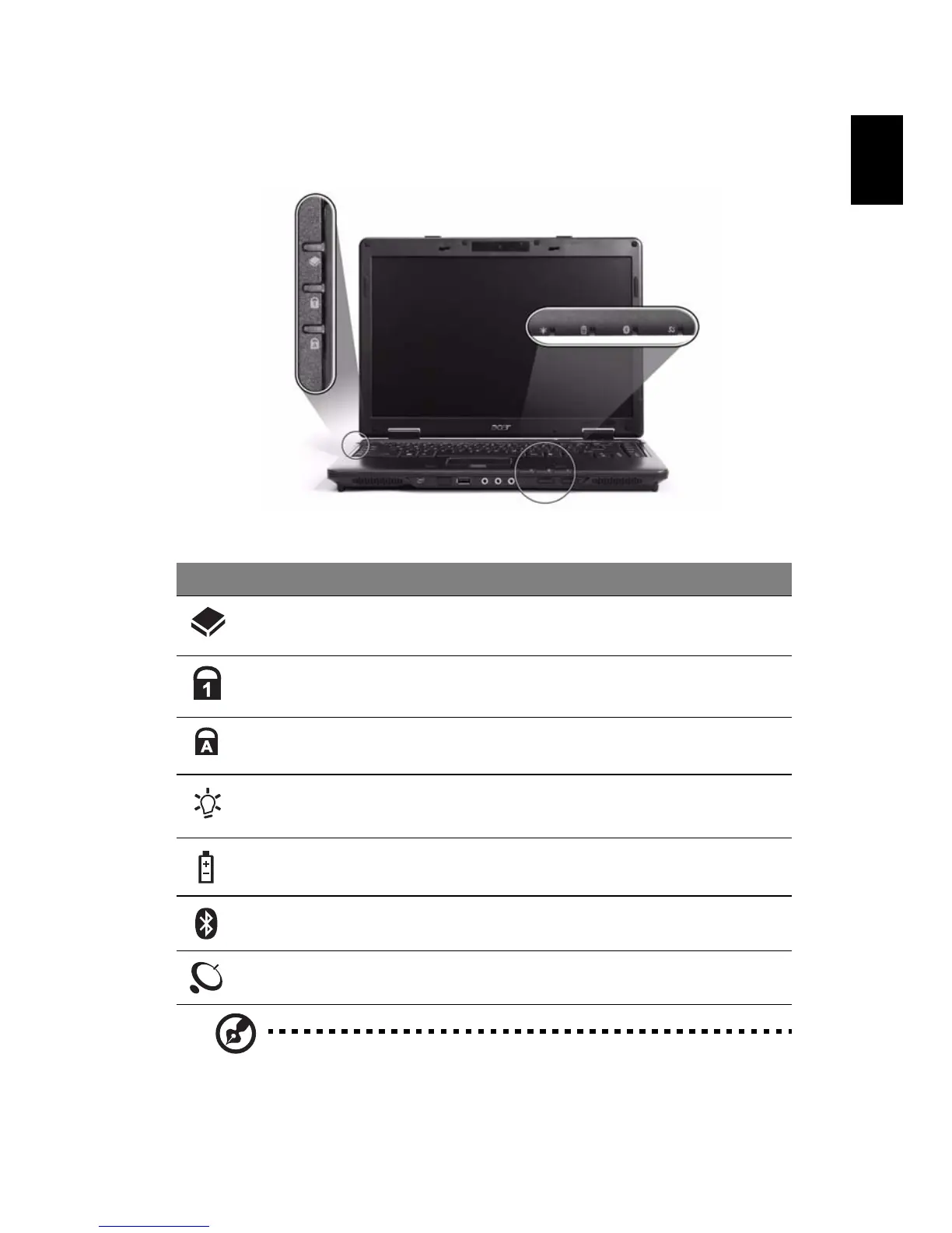 Battery Indicates the computer's battery status.