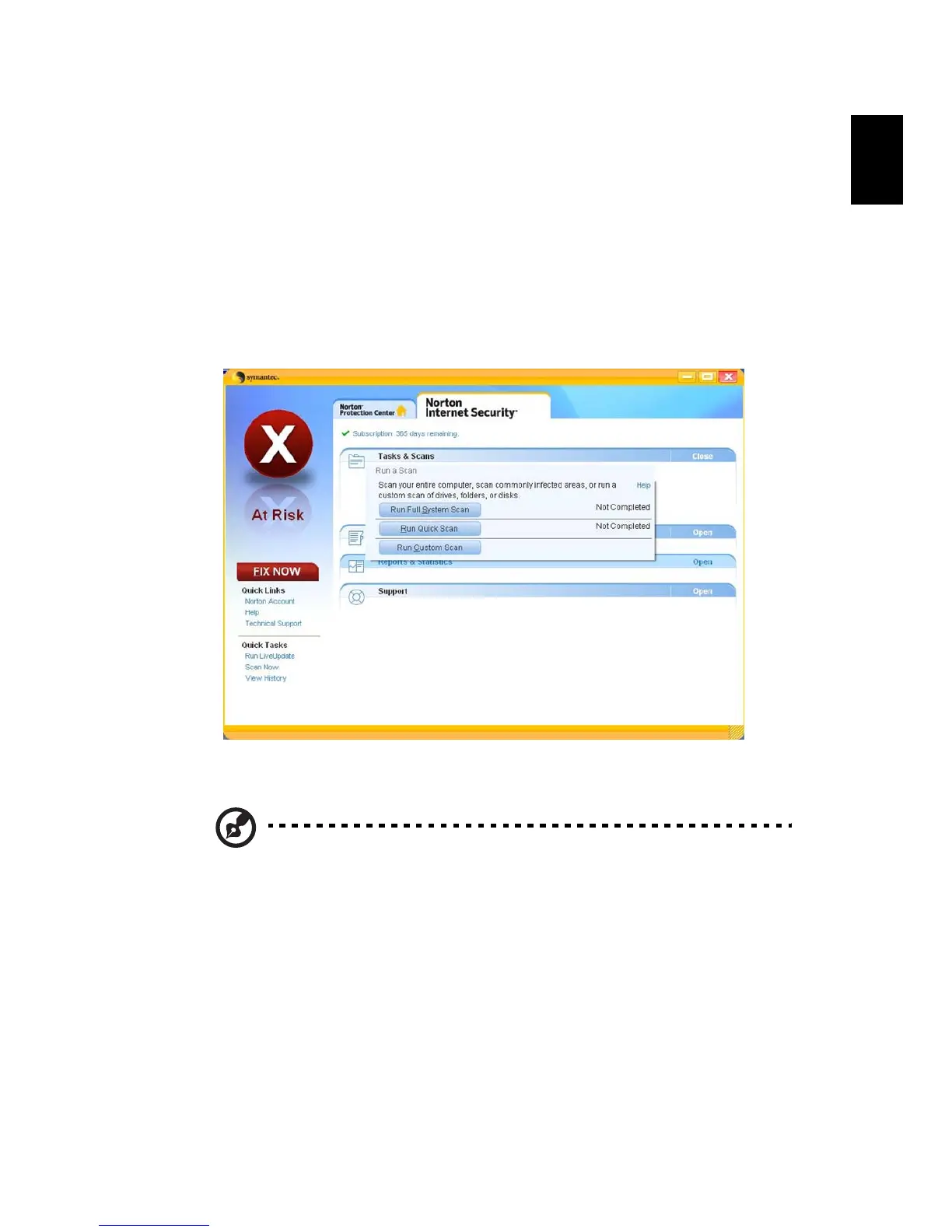 Note: For optimal security, run a Full System Scan when scanning