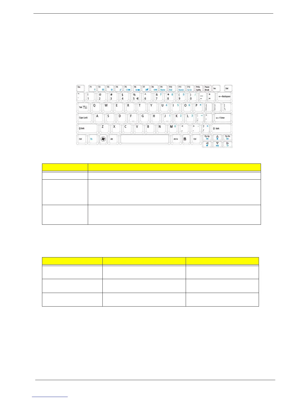 Main keyboard keys Hold <Fn> while typing letters on