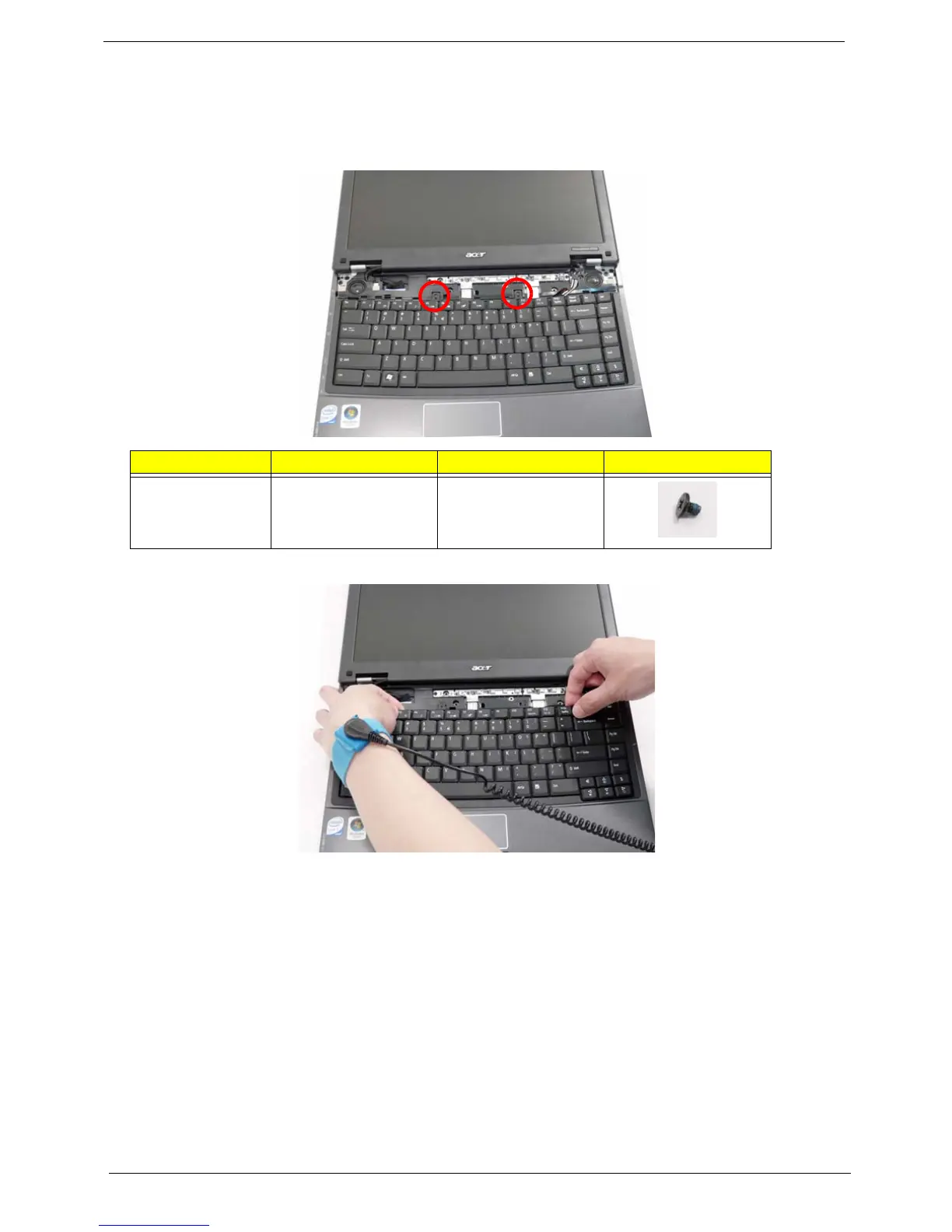 3. Remove the two screws securing the keyboard to the upper case.