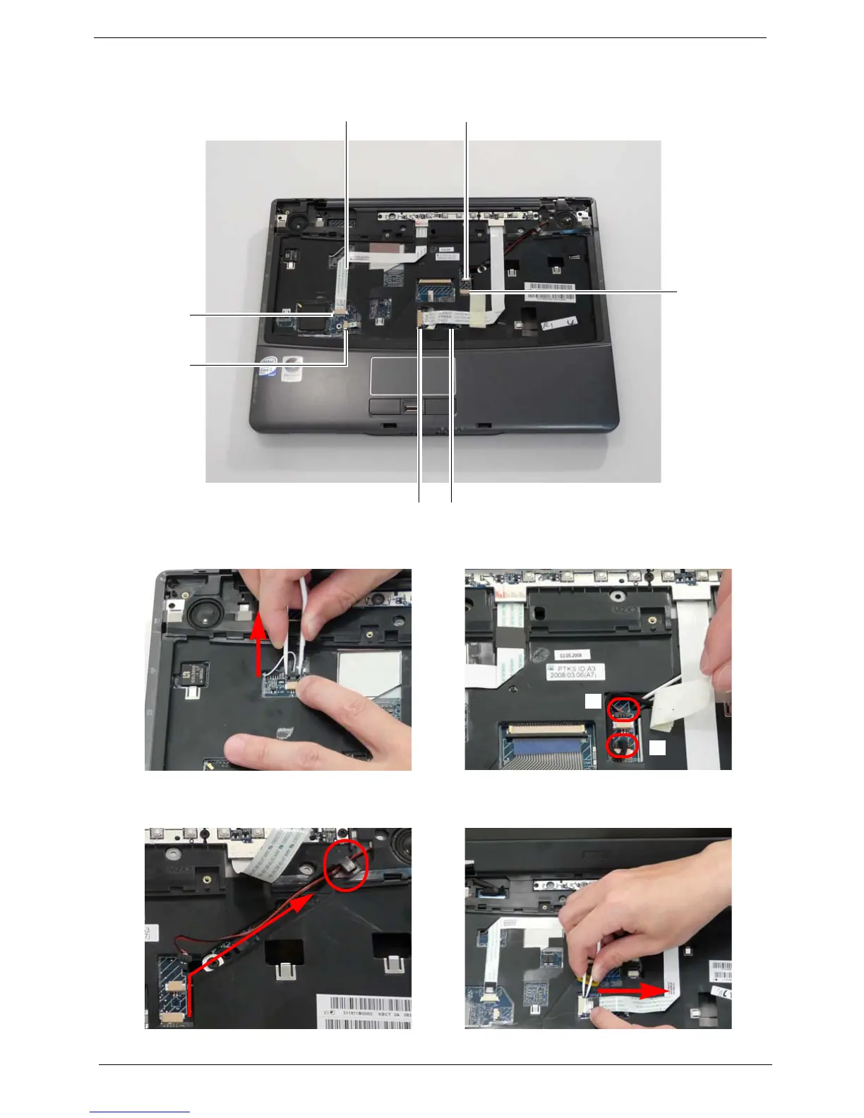 4. Turn the computer over and disconnect the seven cables from the mainboard as shown.