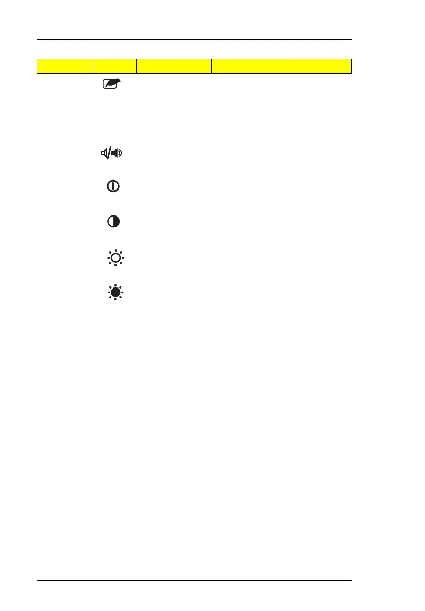 Fn-↓ Contrast down Decreases the screen contrast