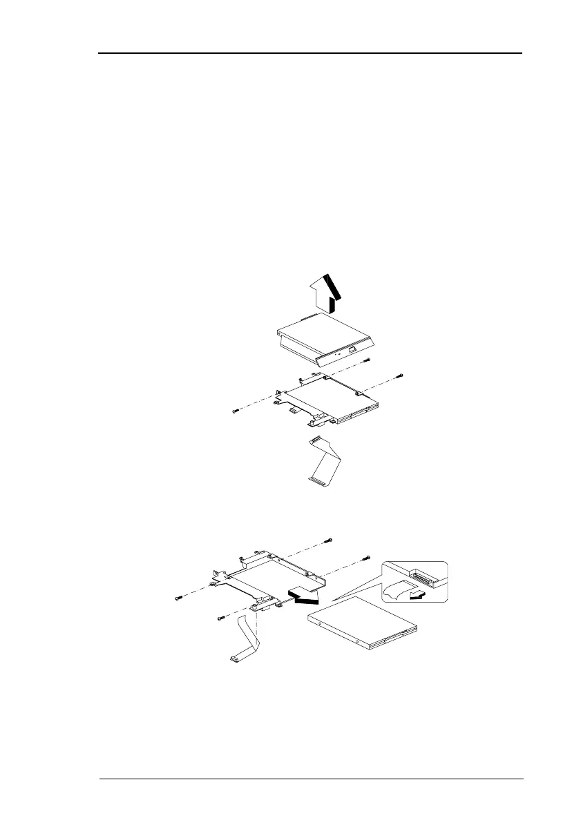 1. Remove the 3 screws located at the CD-ROM/diskette drive module’s