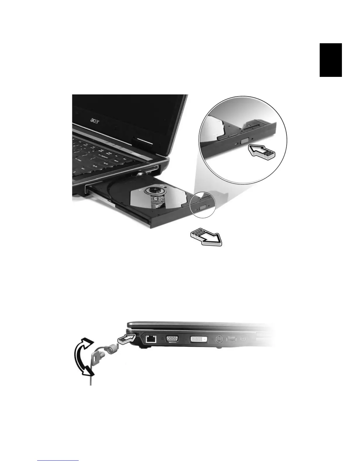 Insert a paper clip to the emergency eject hole to eject the optical drive tray