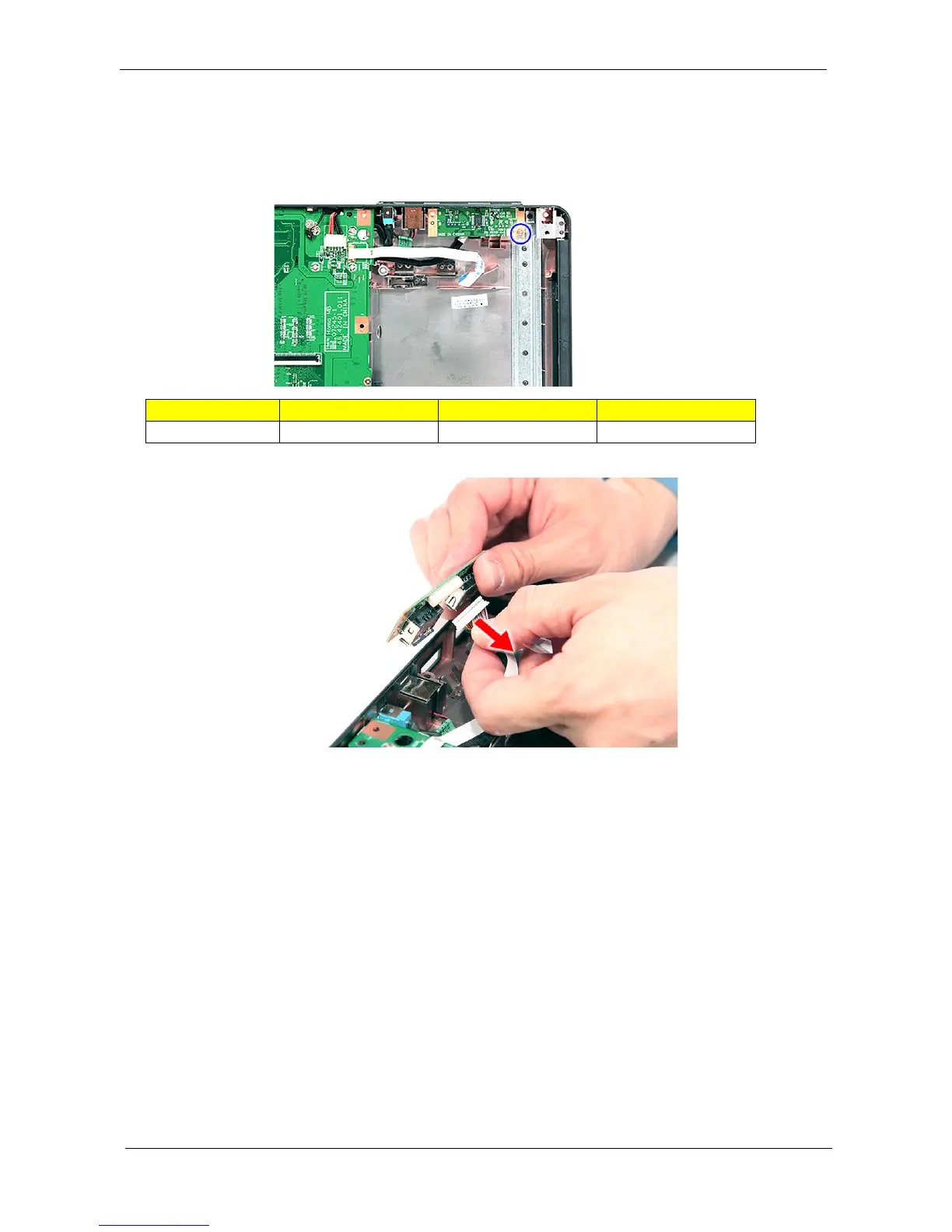 18. Lift the USB board and disconnect the cable from USBCN1 on the USB board.
