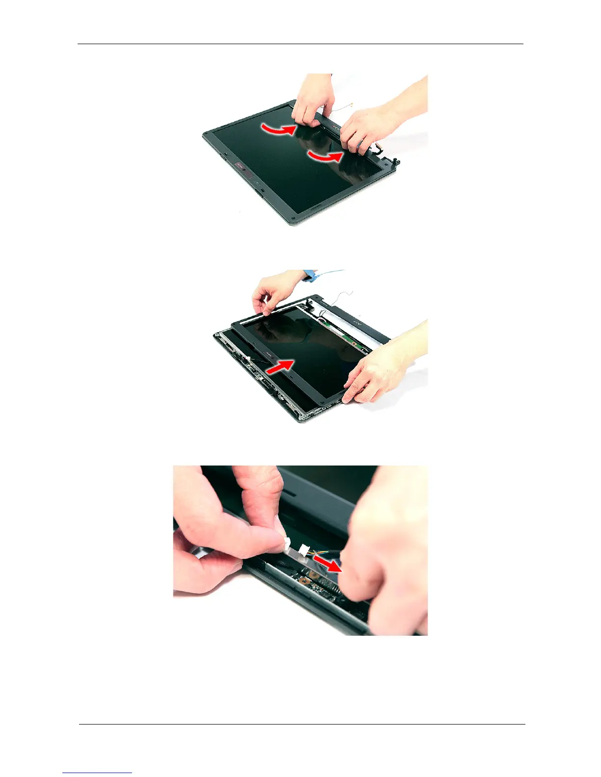 11. Carefully pry open the LCD bezel and place the bezel on top of the LCD panel.