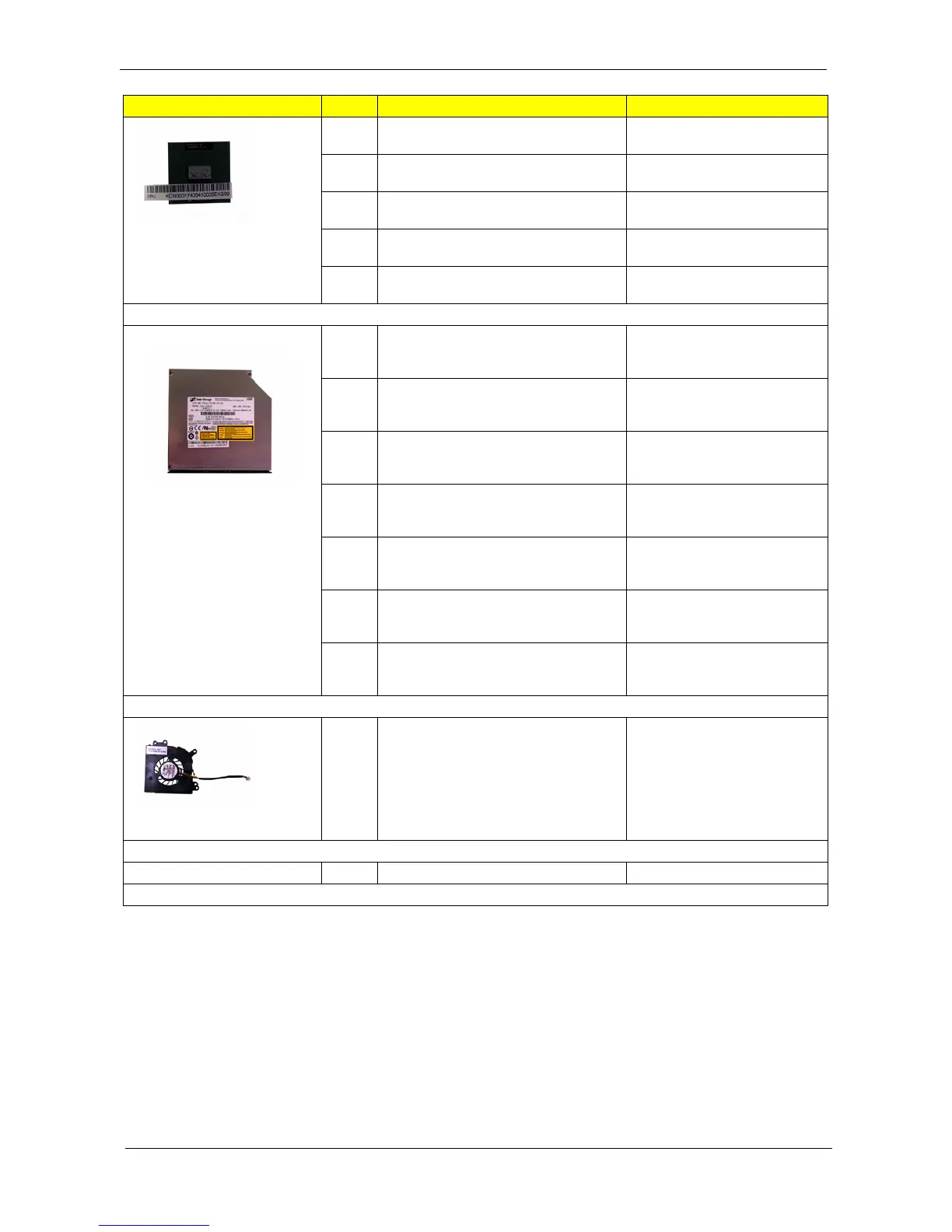 Category No. Part Name and Description Acer Part No.