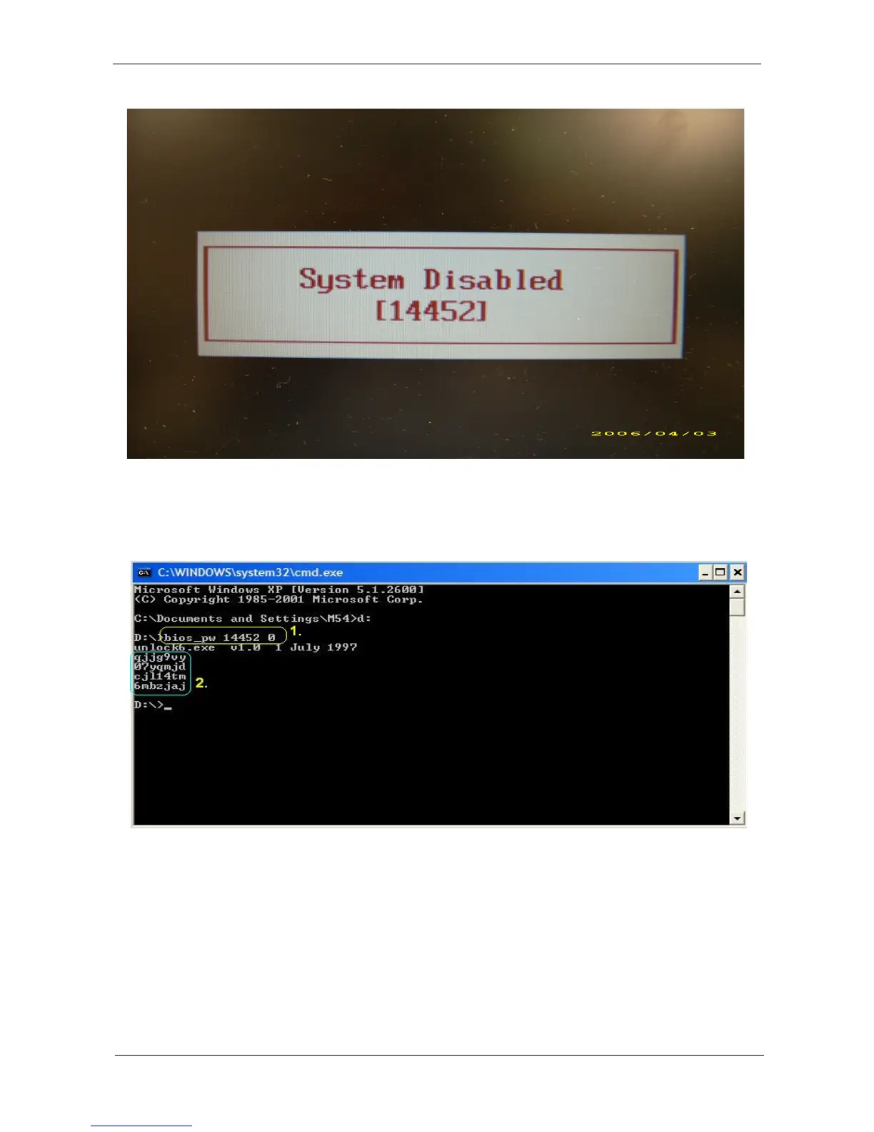 Key in “bios_pw 14452 0”