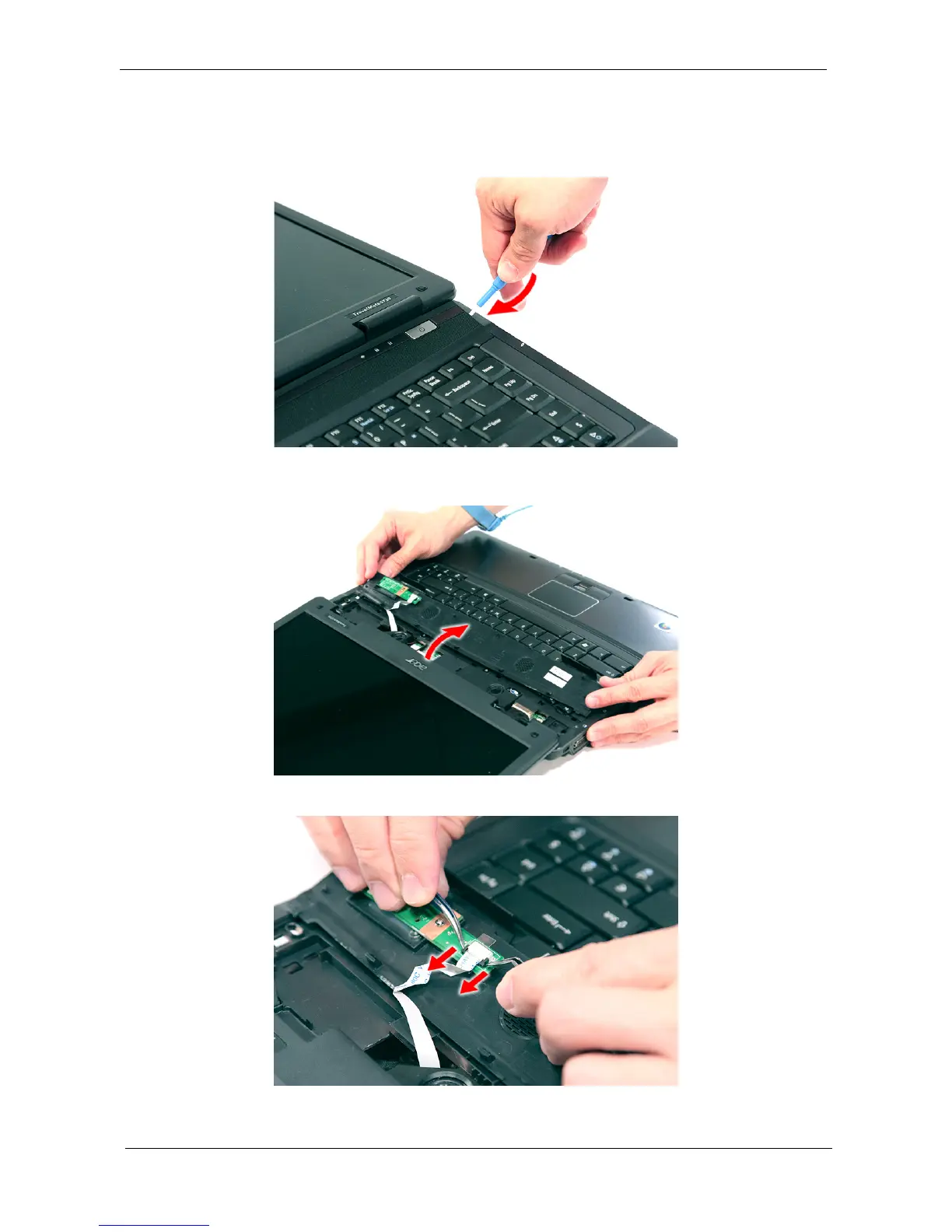 3. Carefully pry loose the middle cover from the latches securing it and turn it over on the keyboard to gain