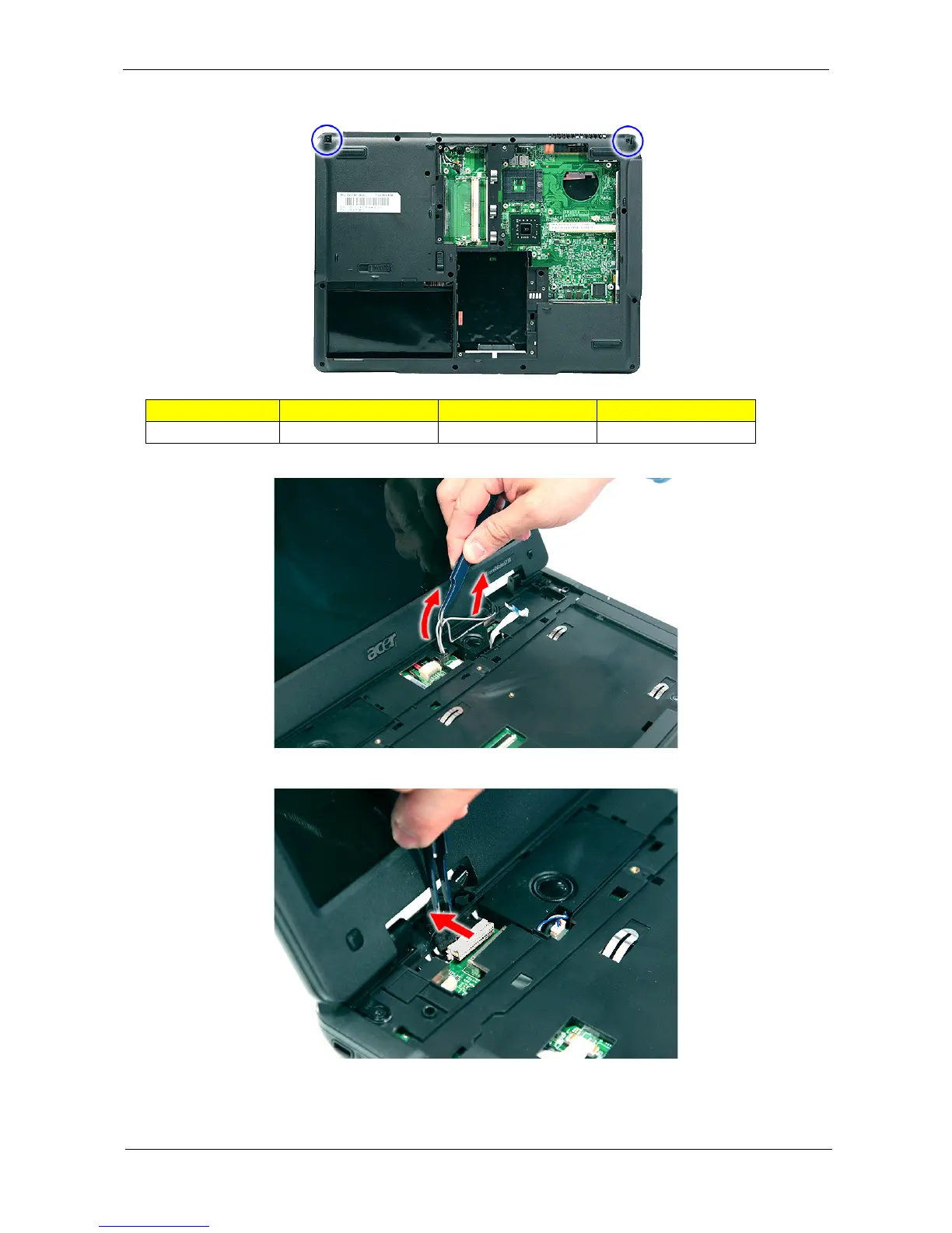 9. Carefully pull out the wireless antenna cables from the hole and release the cables from the latches.