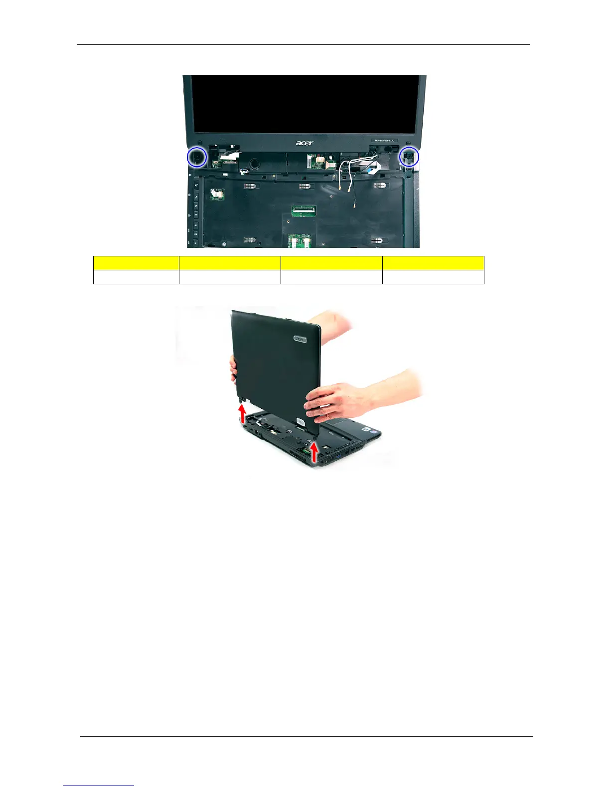 11. Remove the two screws (D) from the left and right hinge of the LCD module.