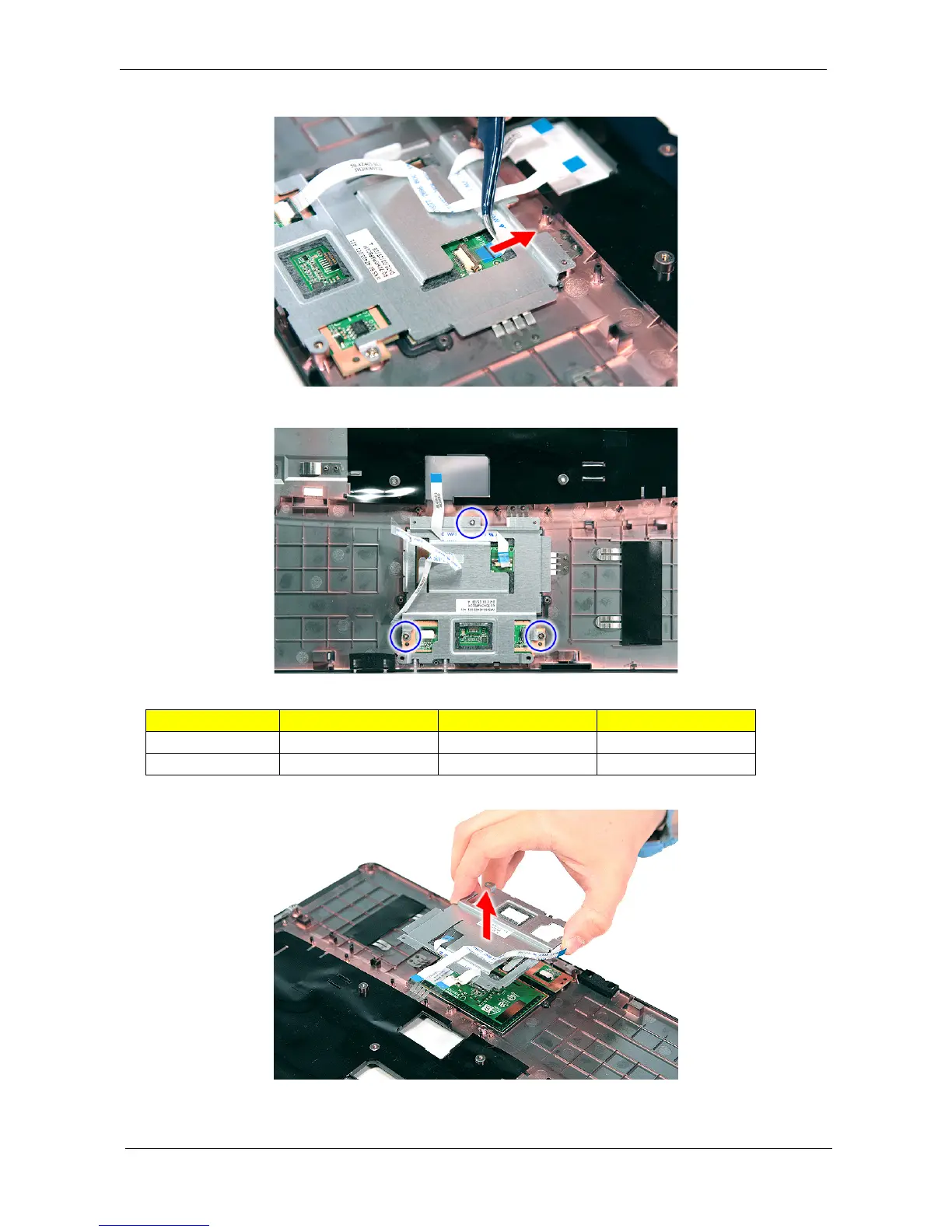 19. Remove the three screws (2 x F, 1 x A) securing the bracket to the upper case.