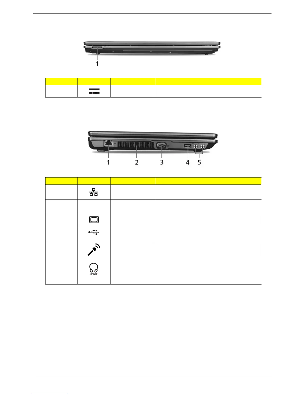 1 DC-in jack Connects to an AC adapter.