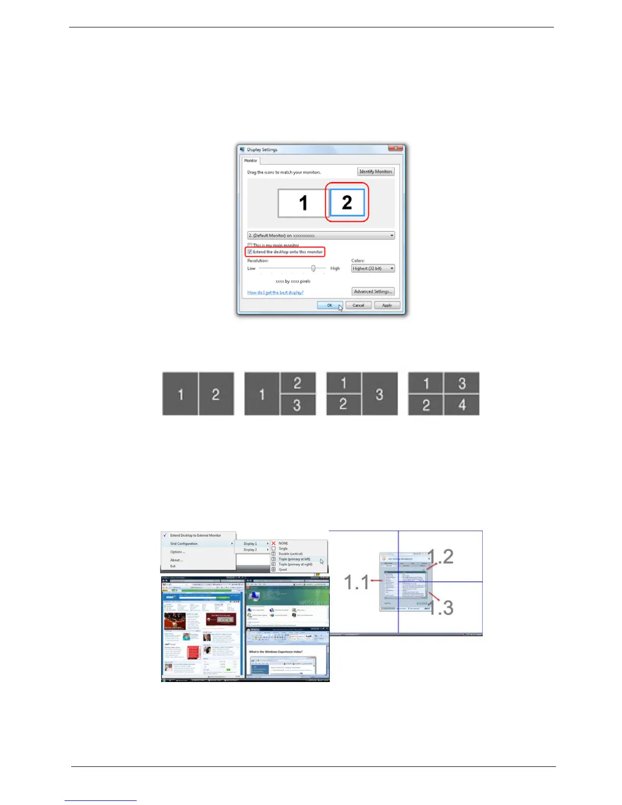 Double (vertical), Triple (primary at left), Triple (primary at right), or Quad Acer Gridvista is dual-display