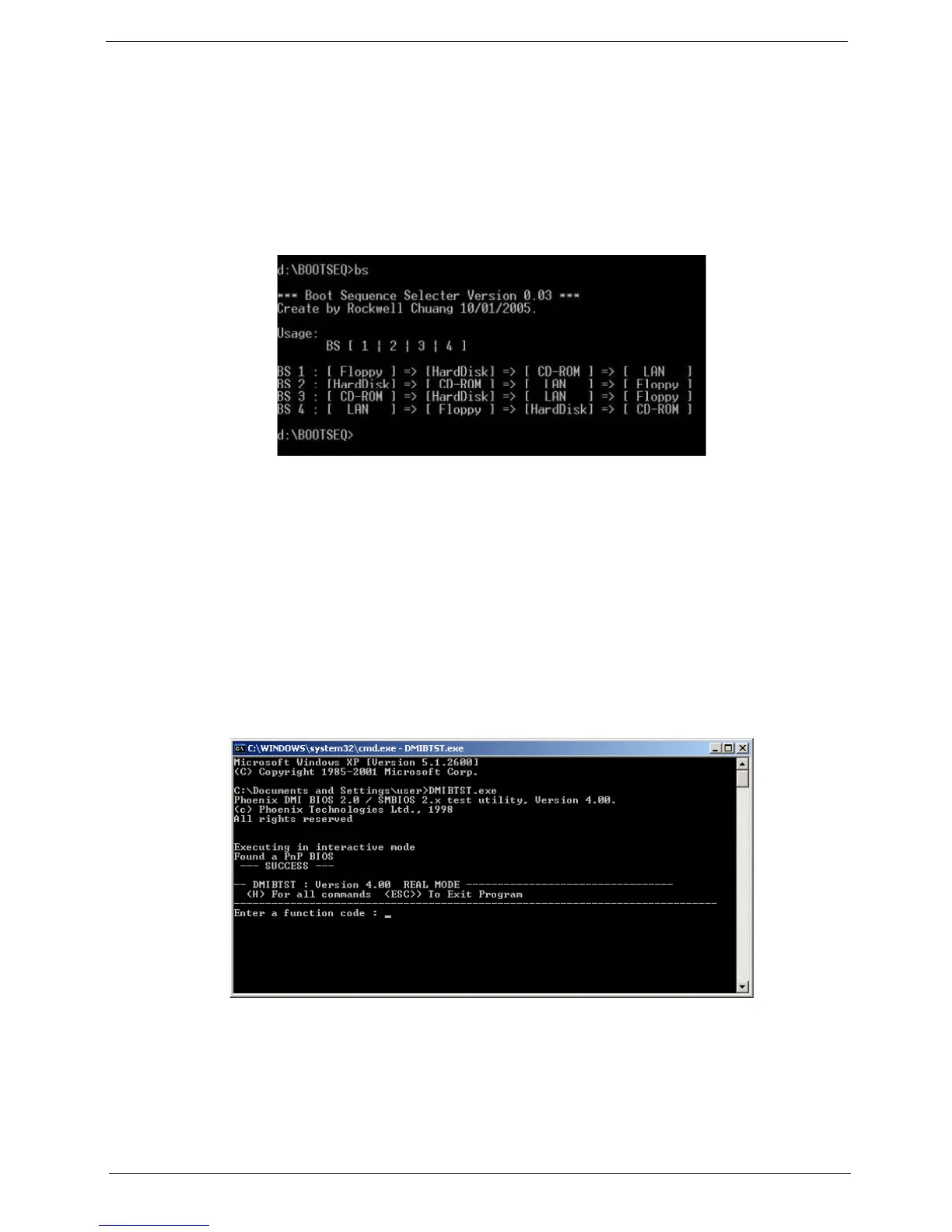 3. Select the desired boot sequence by entering the corresponding sequence, for example, enter BS2 to