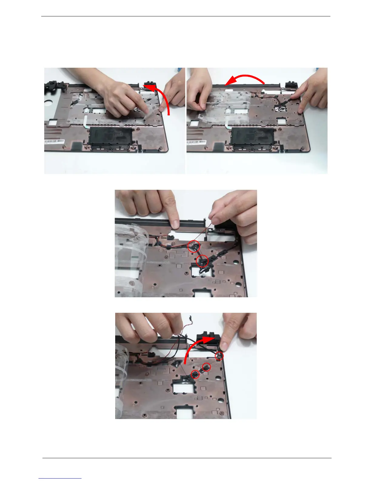 2. Lift the protective sheet away from the Upper Cover to expose the Microphone and Speaker cables as