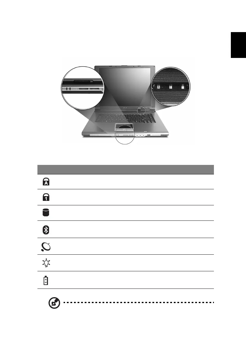The computer has three easy-to-read status indicators on the upper-right above