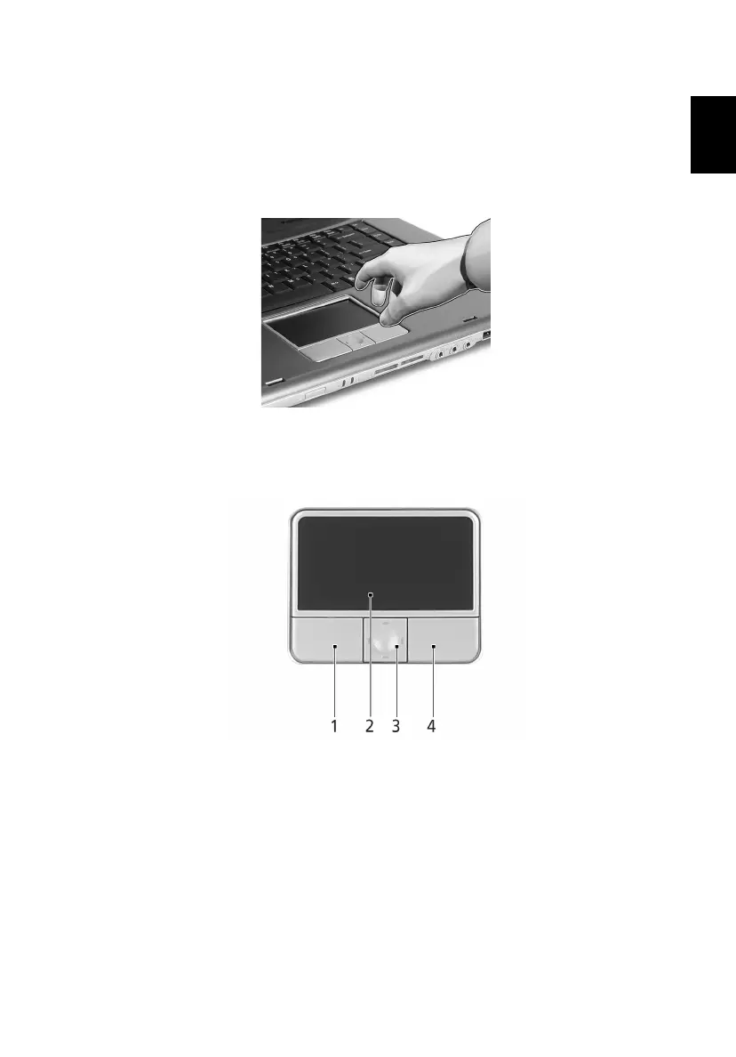 • Press the left (1) and right (4) buttons located beneath the touchpad to
