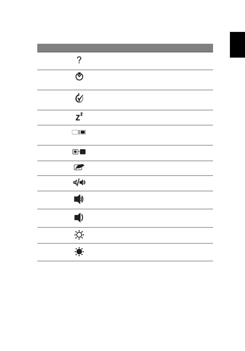 <Fn> + <F1> Hotkey help Displays help on hotkeys.