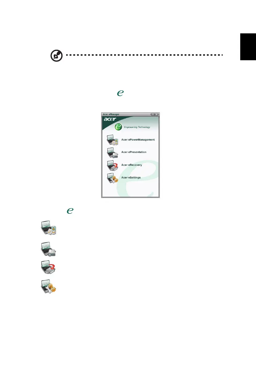 frequently used functions. Press < > to launch the Acer eManager user