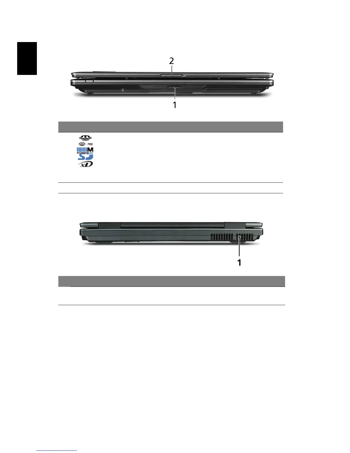 1 5-in-1 card reader* Accepts Secure Digital (SD),