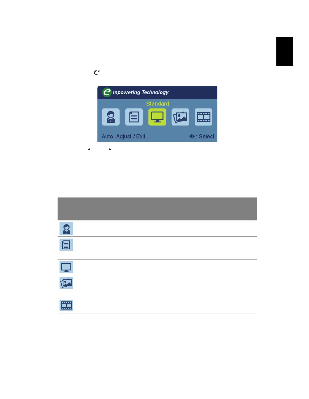 3 Press the Auto-adjust button to confirm the mode and exit Acer eColor