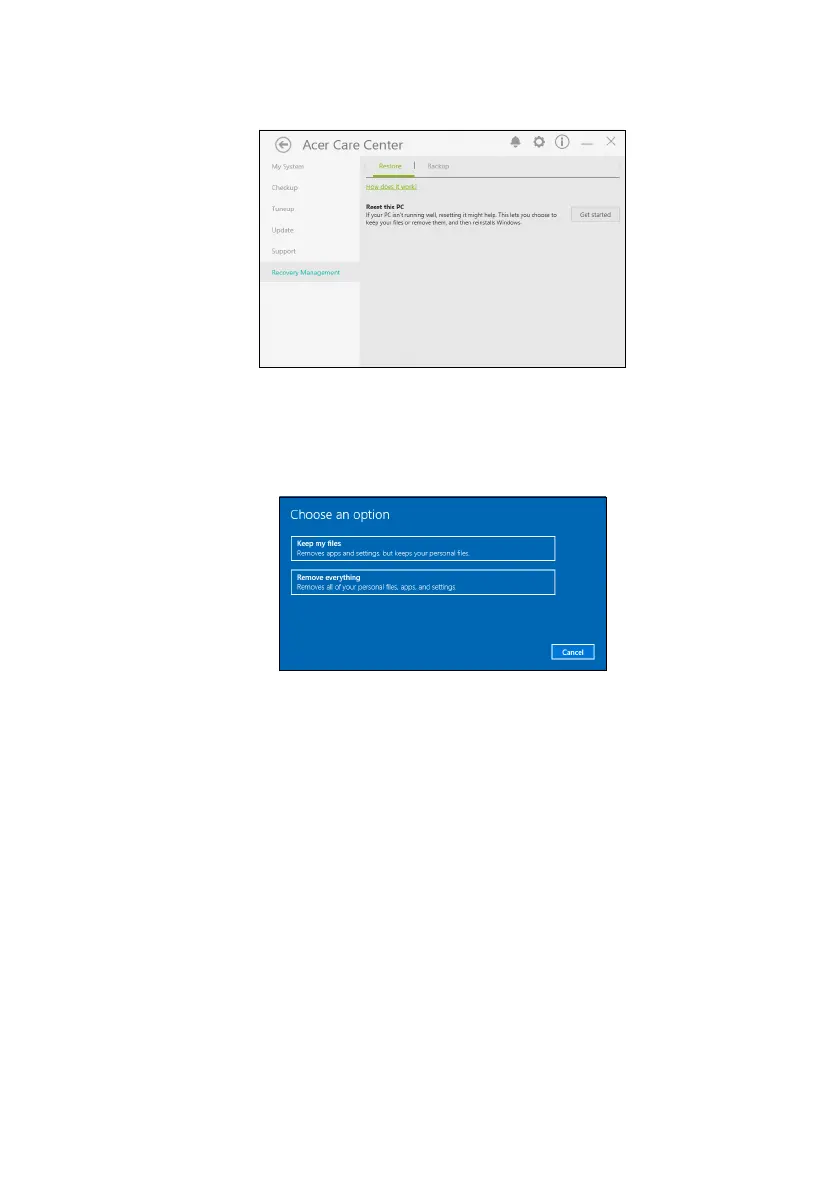 2. Select the Restore tab and click Get Started to Choose an option.