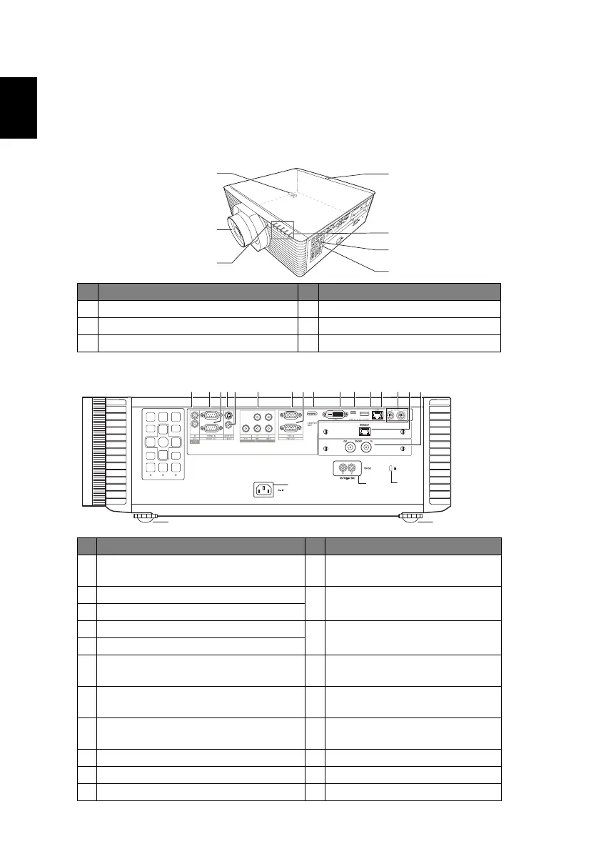 2 Projection lens (optional) 5 Power key