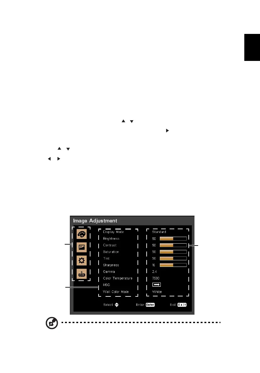 you to make image adjustments and change a variety of settings.
