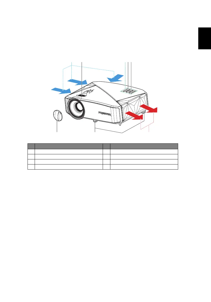 1 Focus ring 5 Air outlet