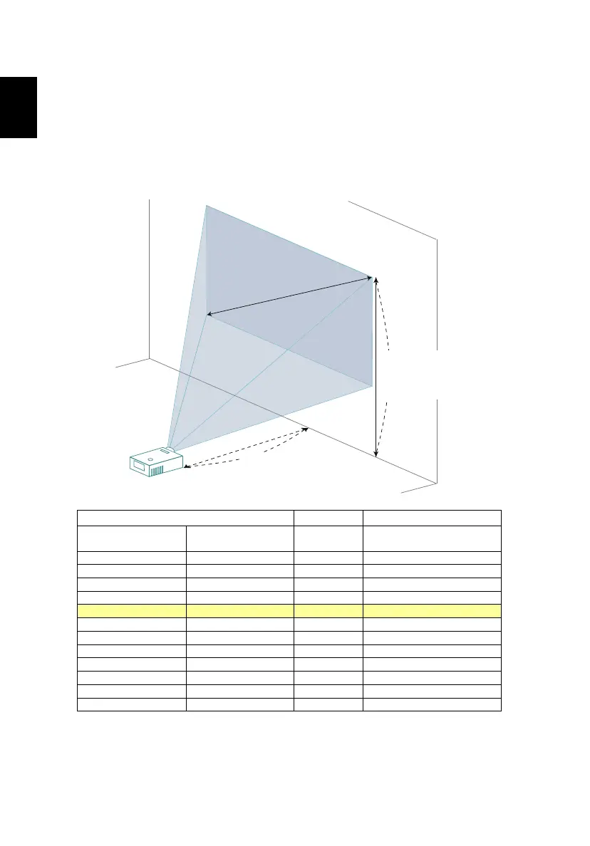To obtain an image size of 80" set the projector at a distance 2.2 m from the