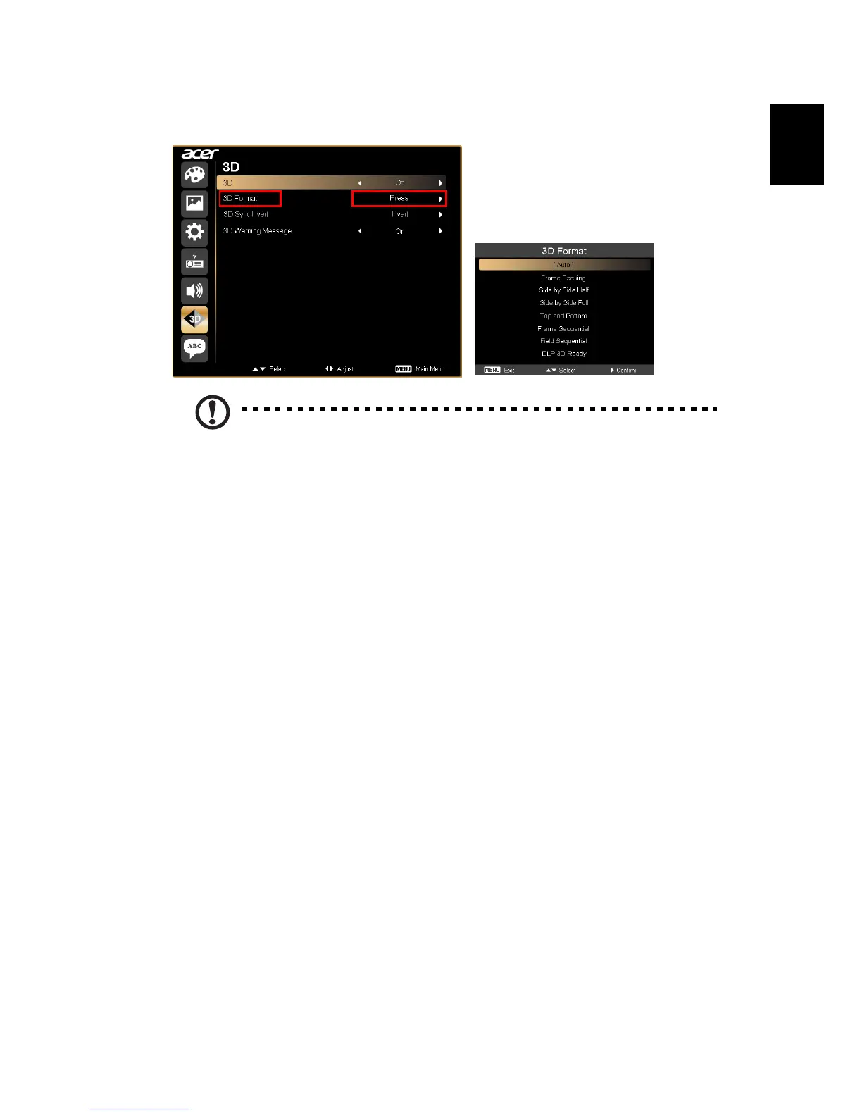 Note: The "3D Format" is only available for HDMI 1.4 or 2nd
