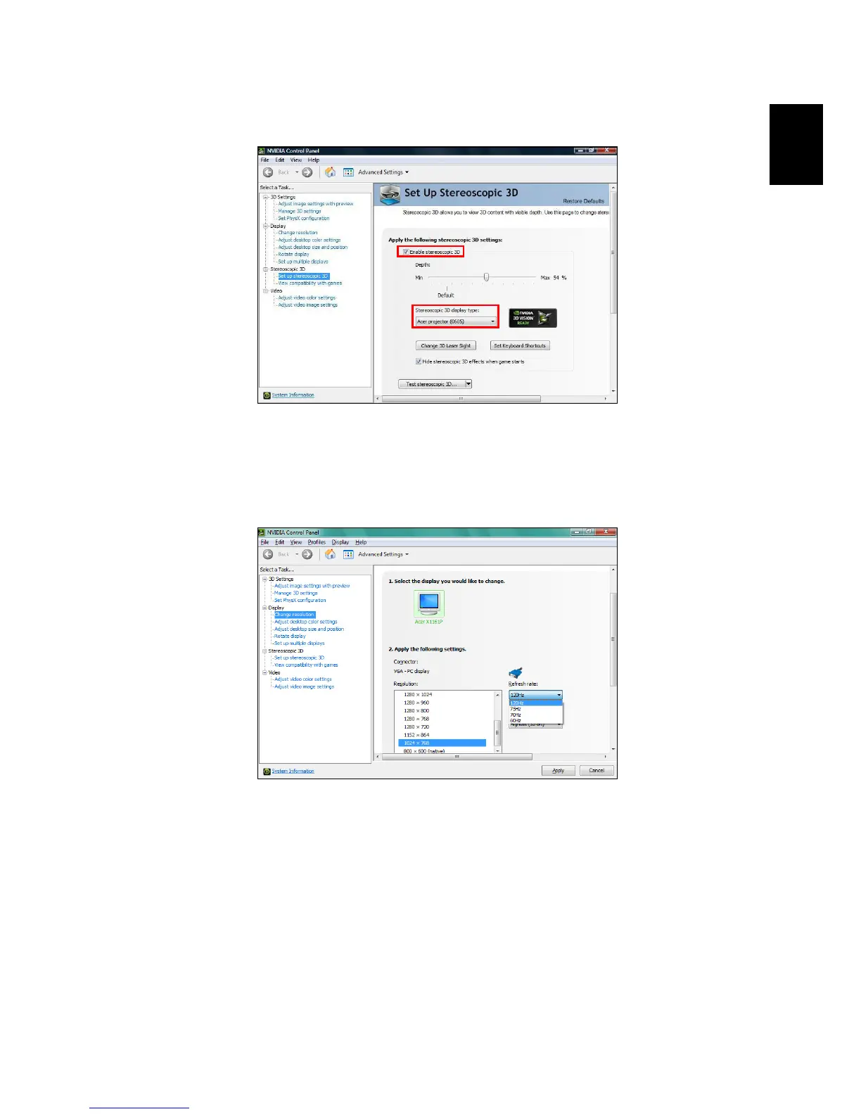 4Check the Enable Stereoscopic 3D option and select the correct display