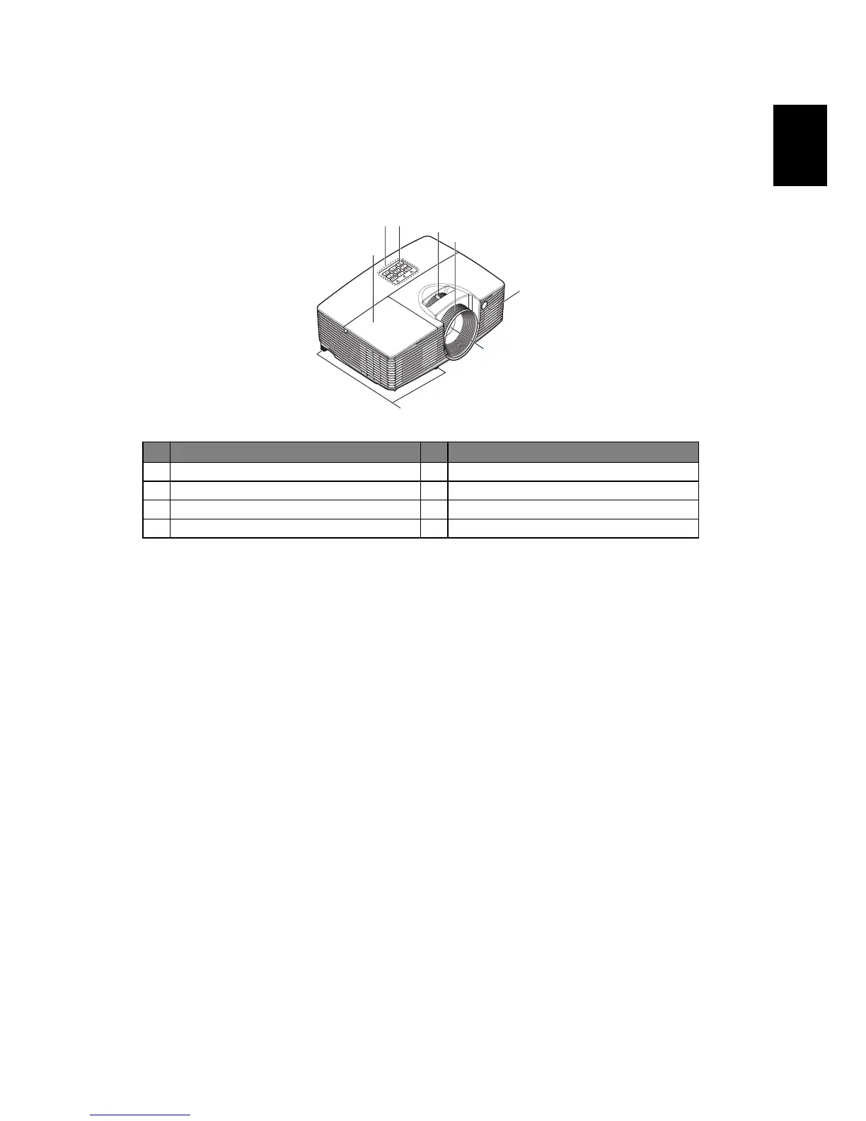 3 Control panel 7 Projection lens
