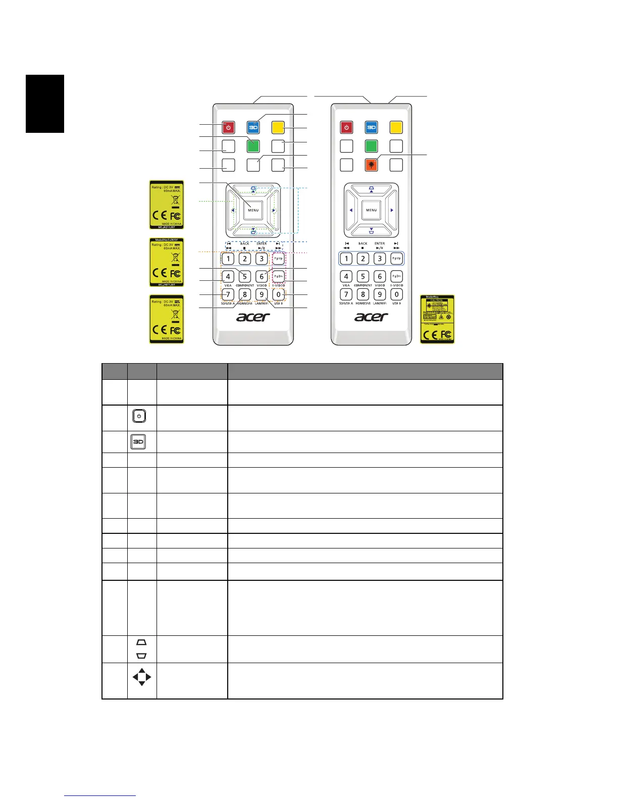 9 ZOOM Zooms the projector display in or out.