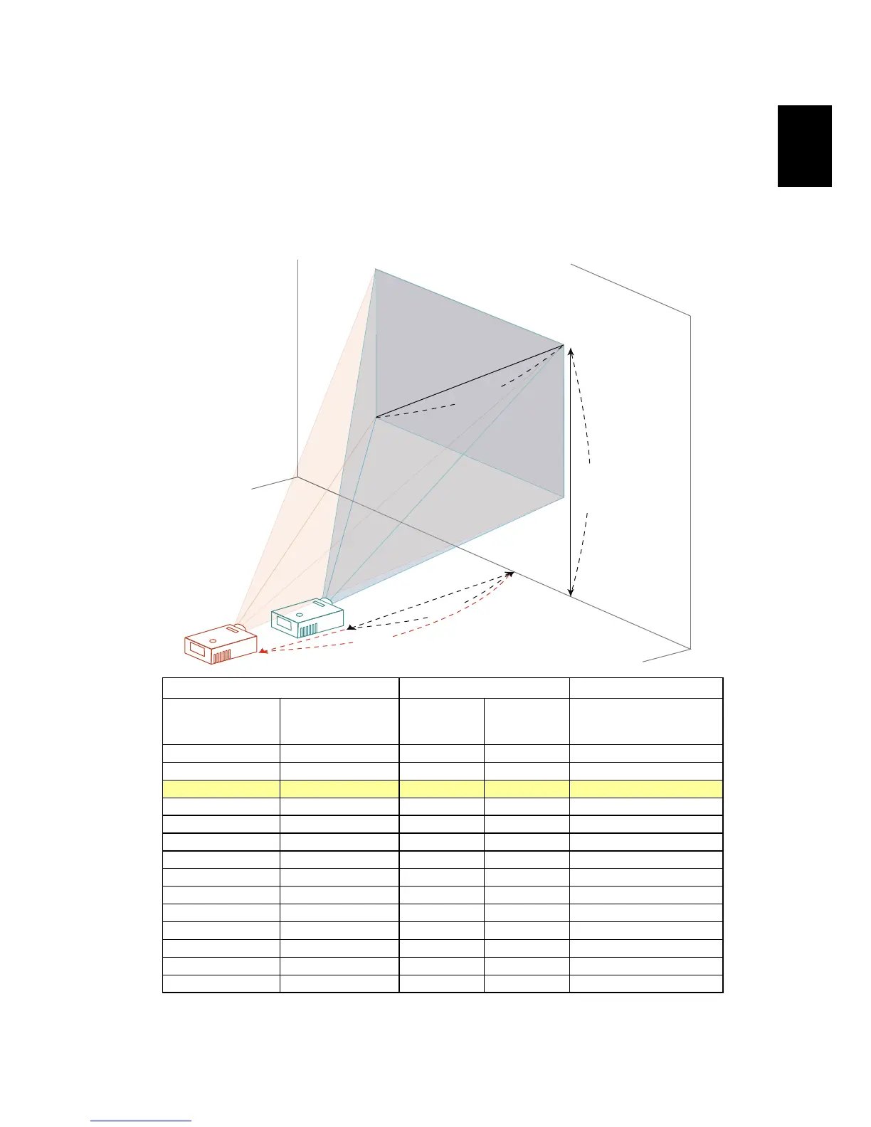 To obtain an image size of 50" set the projector at a distance 1.6 m and 2.0 m
