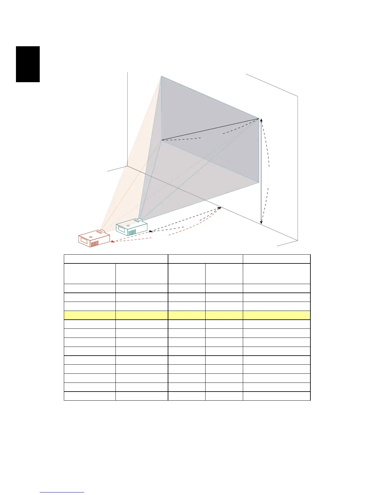To obtain an image size of 60" set the projector at a distance 1.7 m and 2.0 m