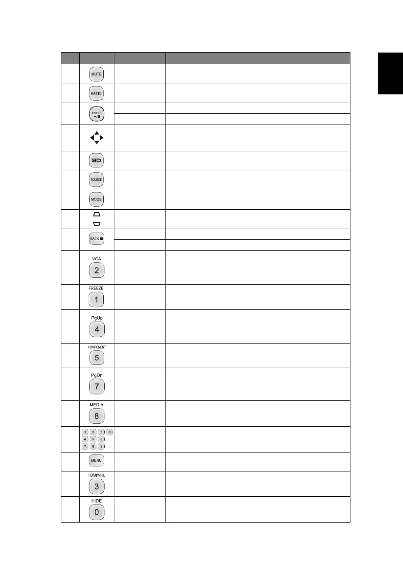 18 KeyPad 0~9 Press "0~9" to input a password in the "Security" OSD.